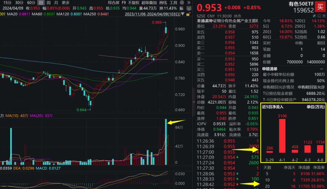 4月8日,有色50ETF(159652)標(biāo)的指數(shù)單日成交額達(dá)1億元,刷新自2023年2月上市第二日以來(lái)最高單日成交額紀(jì)錄!資料顯示,其為全市場(chǎng)銅含量最高的有色指數(shù),其“含銅量”達(dá)26.06%。