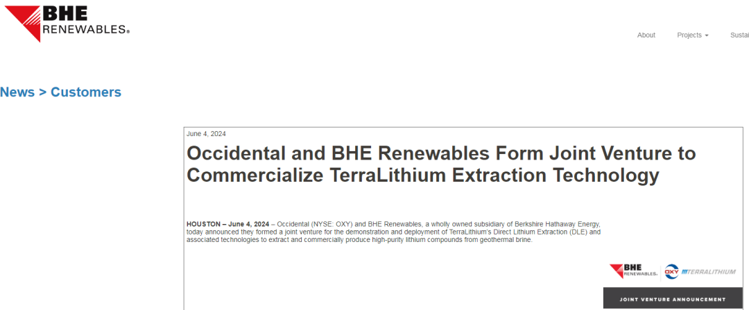 美東時間4日,巴菲特重倉持股的西方石油公司與巴菲特旗下的伯克希爾哈撒韋能源公司(BHE)宣布成立一家合資企業(yè),用于部署TerraLithium的直接鋰提?。―LE)技術(shù)及相關(guān)技術(shù),以從地?zé)猁u水中提取和商業(yè)化生產(chǎn)高純度鋰化合物。