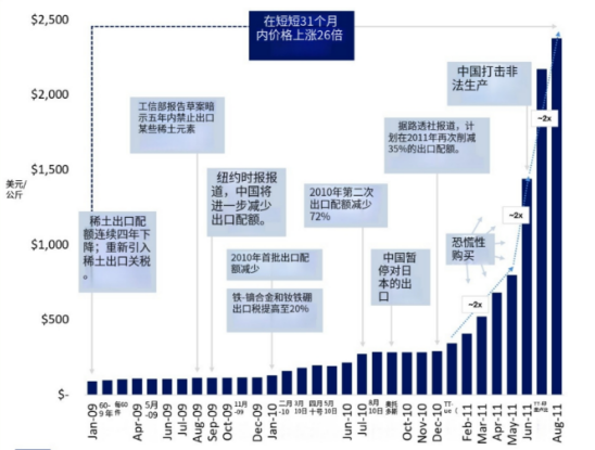 氧化鏑價格在2009年1月-2011年8月31個月內(nèi)上漲26倍