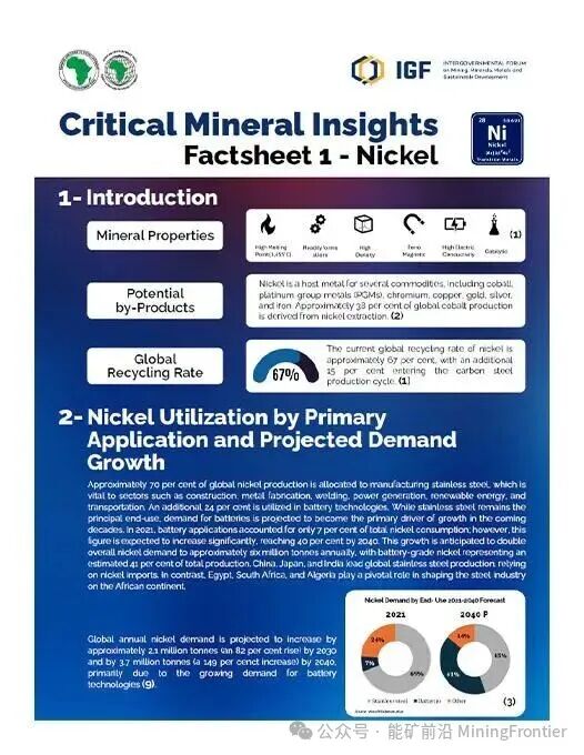 非洲豐富的礦產(chǎn)資源能夠推動工業(yè)增長,但由于開采活動占據(jù)主導(dǎo)地位,而增值活動有限,其巨大潛力仍未得到充分開發(fā)。這些由非洲礦業(yè)論壇 (IGF) 和非洲開發(fā)銀行聯(lián)合編寫的出版物,深入分析了鎳、銅、鈷、鋰、鋁土礦、天然石墨、鐵礦石、錳、磷酸鹽、釩、鉑族元素和稀土元素等礦產(chǎn)資源。