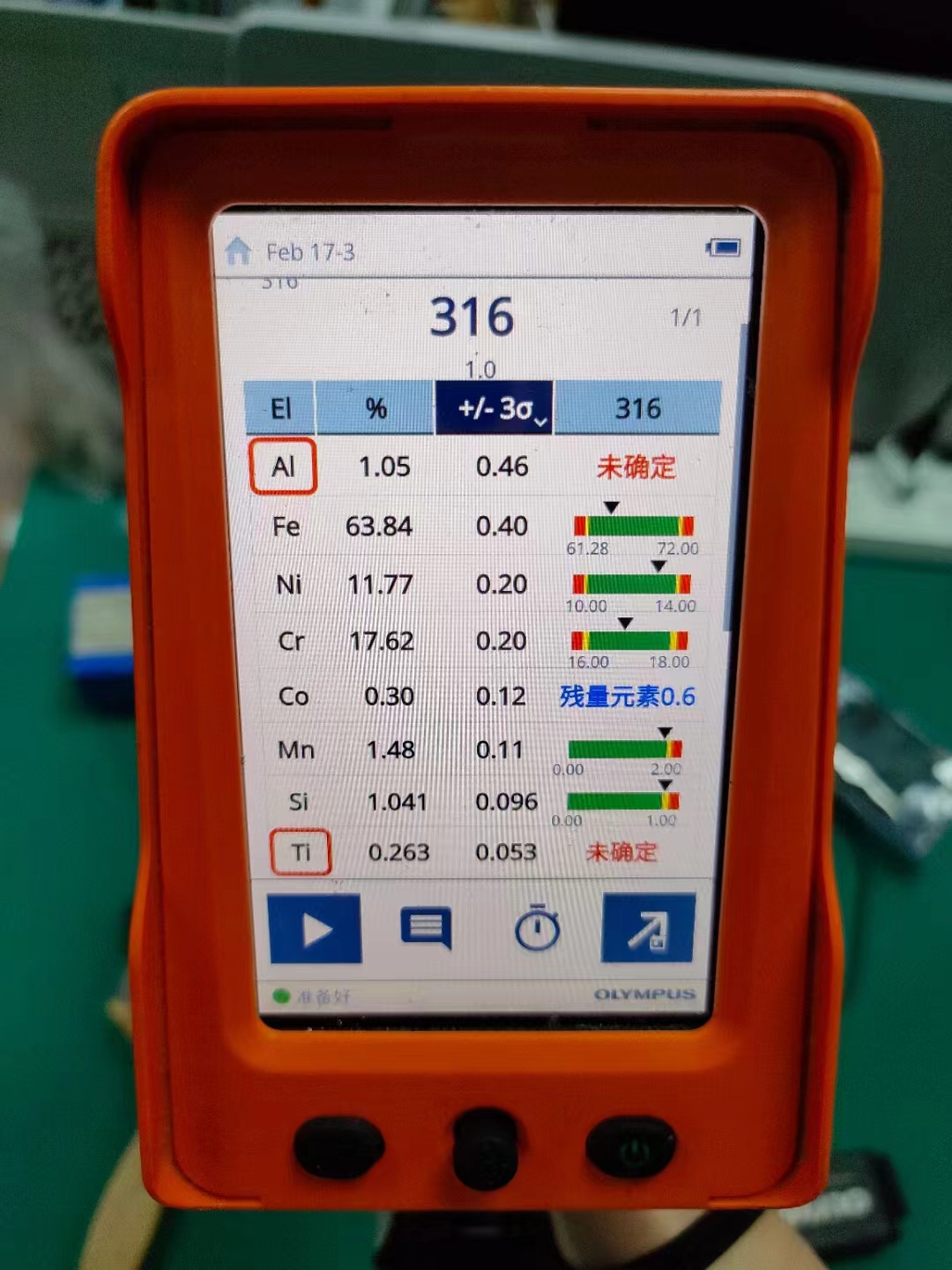 5)可在幾秒內(nèi)辨認合金牌號,并且屏幕會清晰顯示出牌號對比信息以及元素含量百分;